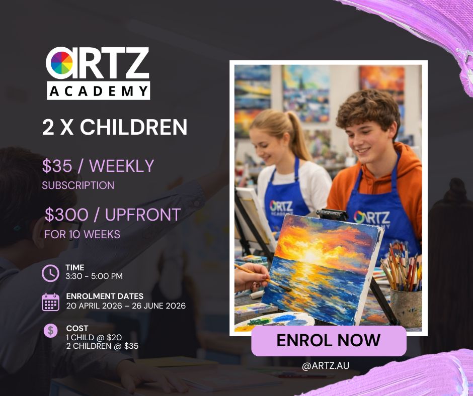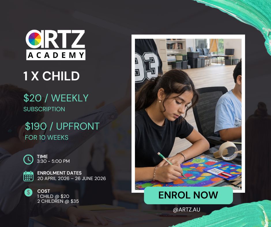 Secure your place today and be part of the Artz Academy program launch starting 20th April 2026. Join anytime, however spots are limited to 30 places, until we organise another tutor. Book-in quickly.